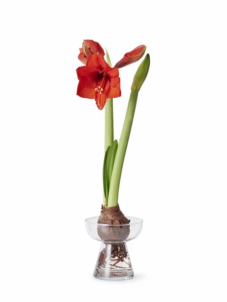 Amarylliser er nydelige i vase! Dette er en transparent liten vase i glass med vakker utforming. En riktig favoritt! Vakre blomster i vase er en fin detalj å innrede med som skaper liv og herlig atmosfære i hjemmet. Det er også en flott gave som blir verdsatt og passer perfekt i de fleste hjem.