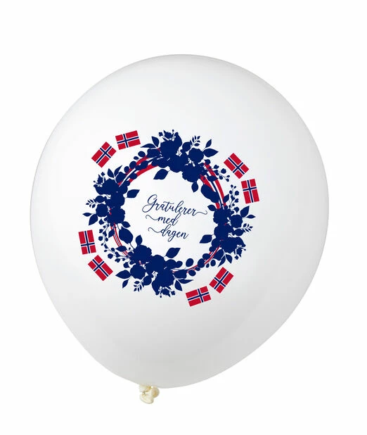 Dekk opp til den store festdagen med passende 17.mai pynt! Disse dekorative ballongene passer perfekt til feiringen. De har passende 17. mai- print med teksten «Gratulerer med dagen». Kombiner gjerne med passende lys, servietter og flagg for real 17.mai- stemning.