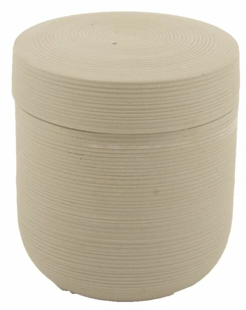 Minimalistisk, kremhvit boks med lokk i moderne design med dekorative riller. Perfekt for oppbevaring av små pyntegjenstander. Lokket kan brukes som fat.
