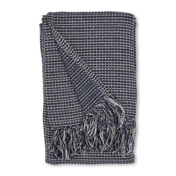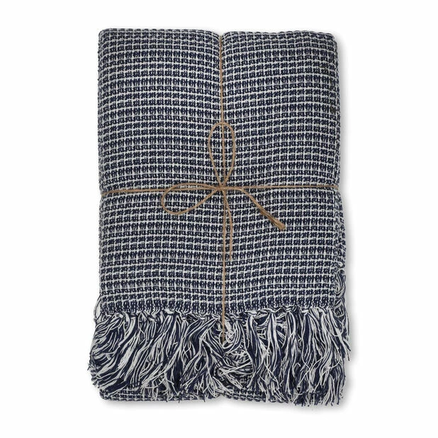 Klassisk, vevd bomullspledd i blått og hvitt. Myk og lett – perfekt for sommeren! Øko-tex sertifisert bomull, fri for skadelige kjemikalier og fargestoffer. Til innendørsbruk.