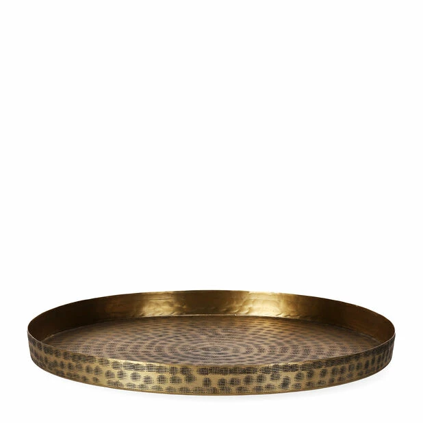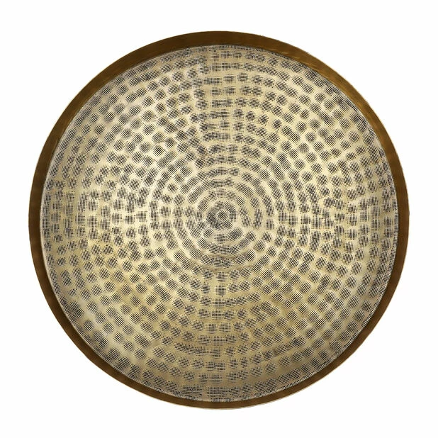 Minimalistisk, rundt, messingfarget brett som blir en fin interiørdetalj i ethvert hjem. Dekorativt brett som kan brukes som lysfat for å beskytte bord og overflater mot stearin. Brettet fås i fargene messing og svart. Mål: 39 x høyde 3 cm.