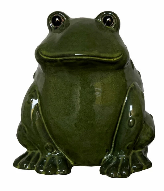 Flott hagedekorasjon i form av en grønn frosk i keramikk. Dekorer hagen, dammen eller uteplassen med en klassisk dekorasjonsfrosk! Fås i to størrelser.