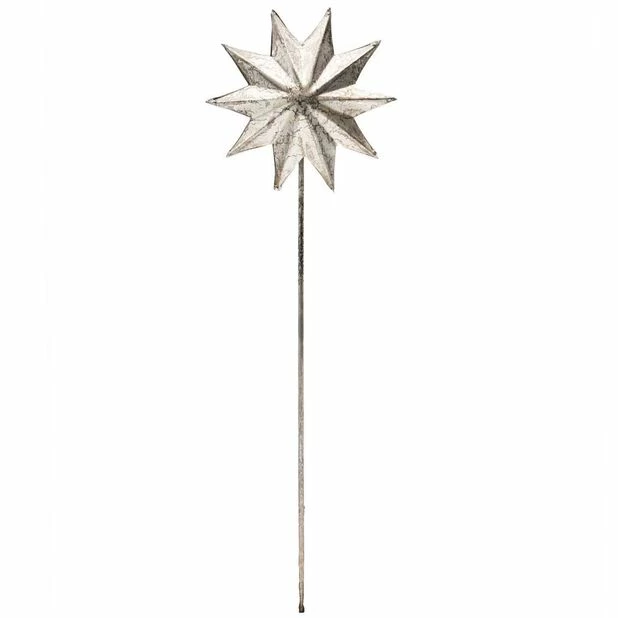 Dekorasjonspinne i form av en sølvfarget stjerne for pynting av potteplanter. Gjør seg like godt i blomsterpotten som i julegruppen, perfekt å gi bort i gave til noen du er glad i! Mål: 11 x 3 x 38 cm.