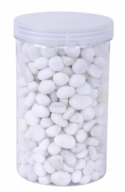 Pakke med hvitfargede småstein i granitt for dekorering i potter og bed. Vekt 2kg
