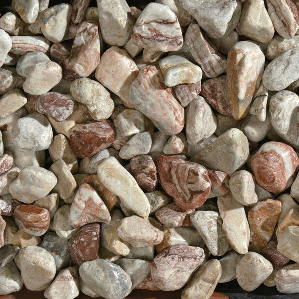 Italiensk marmor for dekorering rundt beplantning, rundt dammen, langs husveggen eller som dekorasjon i potter. Mål: 25-40 mm.