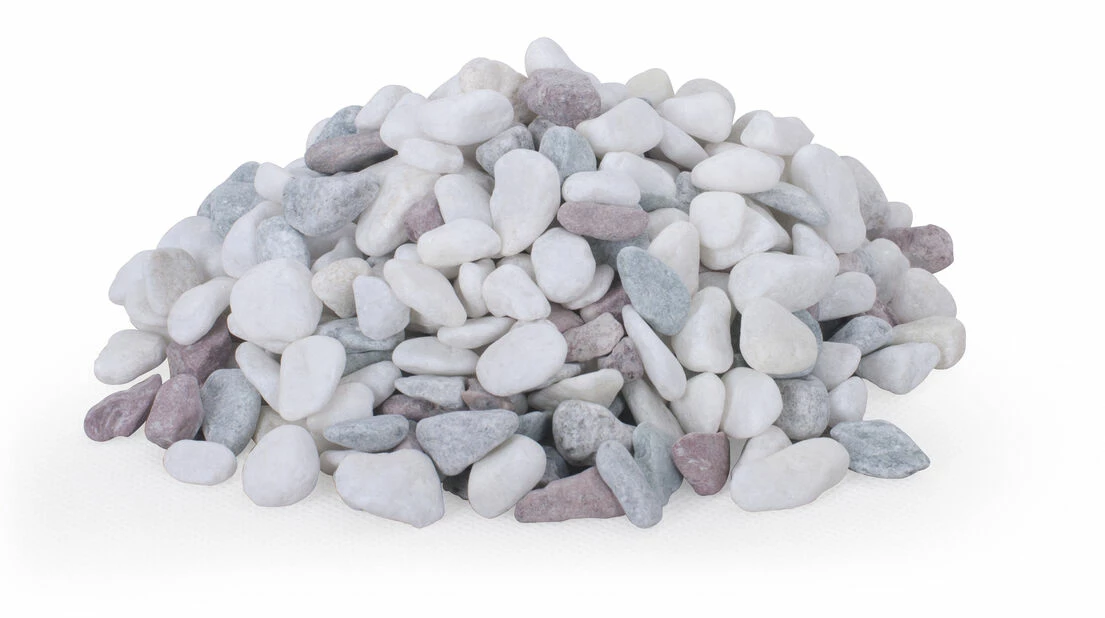 Knust marmor i fargemiks. Bruk dem gjerne rundt plantene dine, eller hvorfor ikke i dammen. Steinene er 9-15 mm store. 10 kg sekk.