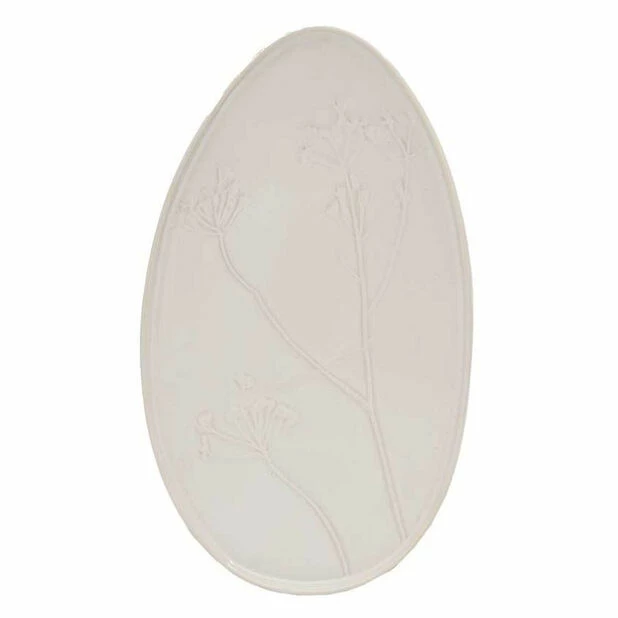 Moderne, hvitt fat i keramikk med dråpeform og vakre blomsterrelieffer i klassisk design. Dekk bordet med fine serveringsfat til middag, kaffe og fest! Næringsmiddelgodkjent.