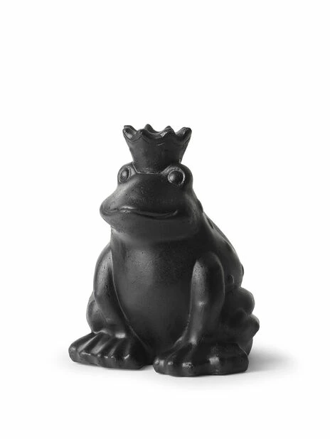 Søt pyntefrosk med krone. I farget sement. Passer like godt ute i hagen som på terrassen eller i bokhyllen inne. Håndlaget og tåler frost. Mål: 20 x 19 x 24 cm.