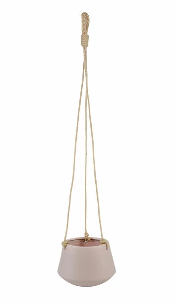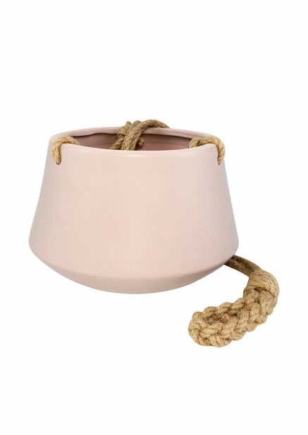 Rosa ampelpotte i keramikk med juterep. Potten har en fin, rosa pastelltone og en sober, matt finish. Diameter: 19 cm, høyde: 13,5 cm. Passer til innerpotte med diameter 12 cm. Maks. belastning: 2,7 kg.