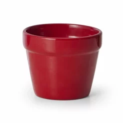 Blank minipotte i keramikk med julerød farge som kompletterer juleblomstene og skaper herlig julestemning i hjemmet.
