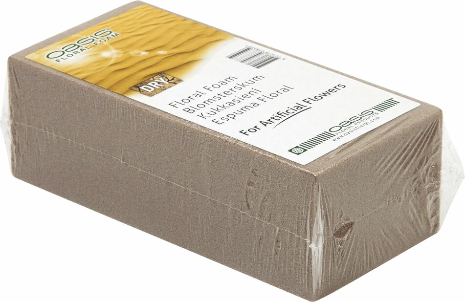Blokk av tørr oasis, perfekt til blomsterdekorering med tørkede blomster. Blokken er lett å skjære i for å få den til ønsket fasong og størrelse.