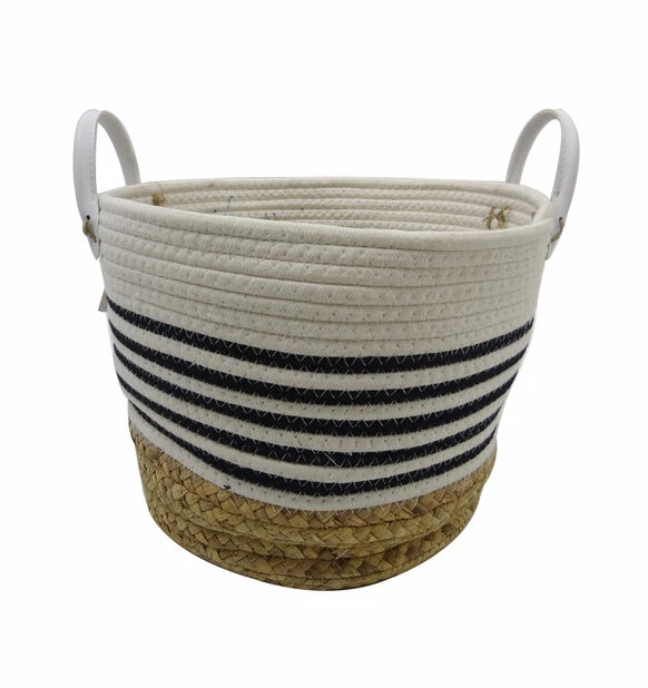 Fin kurv med håndtak og maritim design. En stripete kurv i bomull som gir mulighet for praktisk og dekorativ oppbevaring. Diameter: 31 cm, høyde: 25/30 cm (uten/inkl. håndtak). Maks. belastning: 2 kg.