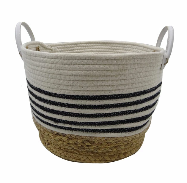 Med denne oppbevaringskurven får du både en stor kurv som hjelper deg å holde orden, og en fin interiørdetalj du kan nyte. En oppbevaringskurv med håndtak er enkel å flytte og kan pynte opp en hvilket som helst kjedelig krok. Denne kurven i naturmateriale har mange bruksområder. Fyll den for eksempel med fargeglad strikketøy, magasiner på badet eller leker på barnerommet.