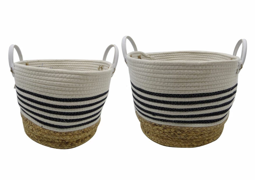 Fin kurv med håndtak og maritim design. En stripete kurv i bomull som gir mulighet for praktisk og dekorativ oppbevaring. Diameter: 36 cm, høyde: 27/33 cm (uten/inkl. håndtak). Maks. belastning: 3 kg.