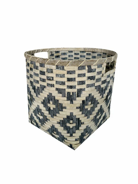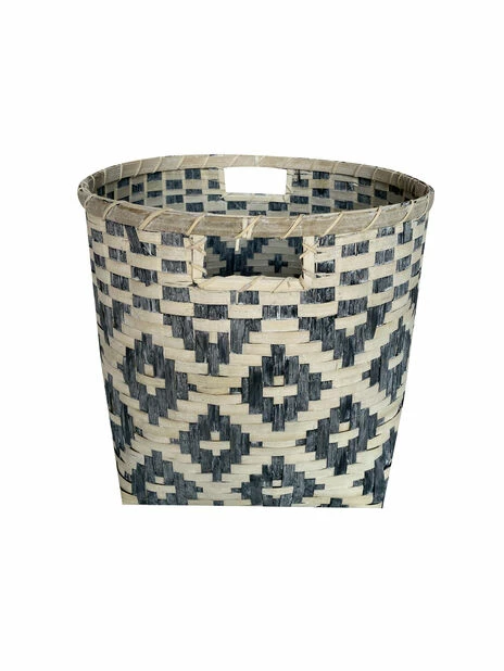 Håndlaget bambuskurv med diskré håndtak og vakkert mønster. En fin, flettet kurv som både gir mulighet for praktisk oppbevaring og er et dekorativt innslag i hjemmet! Diameter: 38 cm, høyde: 36 cm.