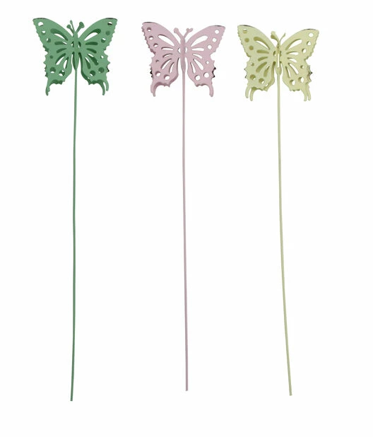 Festlig blomsterpinne i metall med en søt sommerfugl. Passer perfekt i påskens blomsterarrangement. Finnes i flere ulike farger. Lengde: 30 cm.