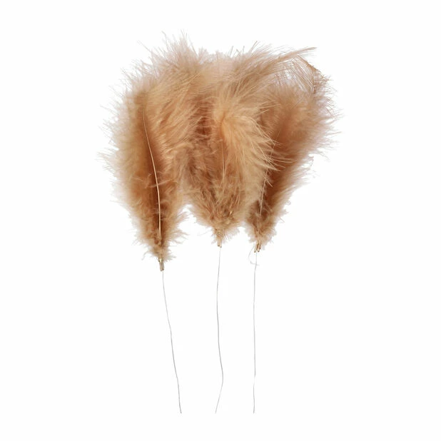 Klassisk, brun fjærblomst til dekorasjon av påskeris. Sett et naturlig preg på årets påskefeiring med vakre fjær i naturnære nyanser! Fås i tre ulike farger. Kalkunfjær. Selges i 3-pk.