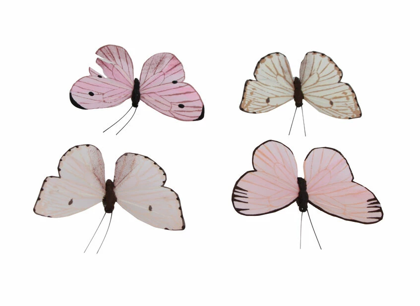 Vakre sommerfugler i ulike farger med clips som gjør det enkelt å hengde de opp i påskeriset. Mål: 9 cm. Selges i 4-pakning.
