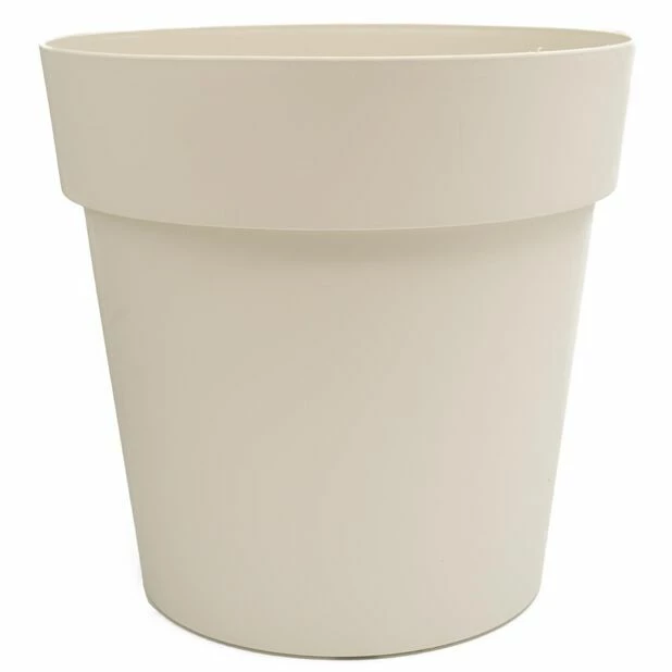 Fin potte i plast med tidløst og minimalistisk design og opphevet kant øverst. Diameter: 42 cm, høyde 40 cm. Uten dreneringshull i bunnen.