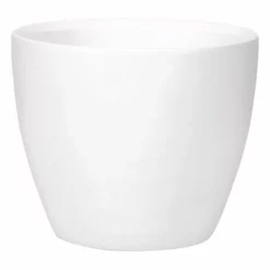 Moderne og tidløs hvit potte med glatt overflate og lett innsvingning helt nederst. Tilfører stil samtidig som den løfter inneplantene! Til innendørsbruk.
