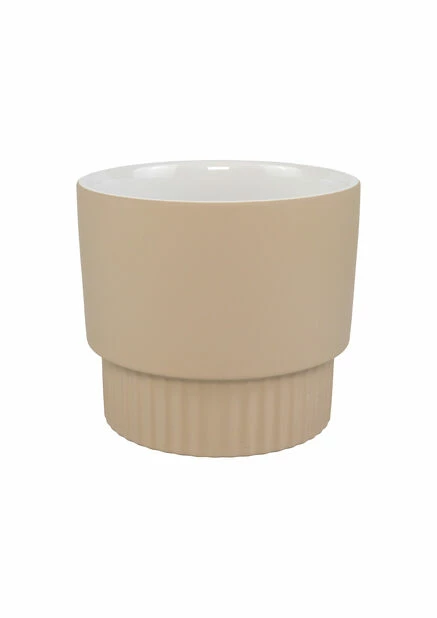Herlige pasteller! En vakker keramikkpotte i beige – og det beste av alt er dens fantastisk herlige gummioverflate! Diameter: 13 cm, høyde: 12 cm. Passer til innerpotte med diameter 10,5 cm.