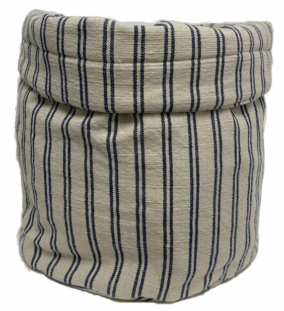 Moderne, beige stoffpotte i stilren design med dekorative striper. Potte i bomullsstoff med vanntett fôr. Bruk en innerpotte for å sikre at planten får god drenering.