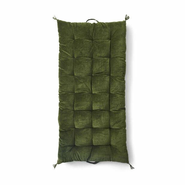 Komfortabel dobbel sittepute med bomullsvelur på fremsiden og bomullslerret på baksiden. Perfekt til hagemøblene utendørs. Innerpute med 100% polyesterfyll medfølger.