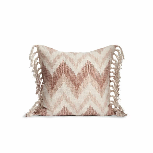 Moderne pute i 100 % bomull med lekent sikksakkmønster og dekorative frynser. Piff opp sofagruppen med en komfortabel pute i herlige nyanser av korallrosa eller grønt! Mål: 50 x 50 cm.