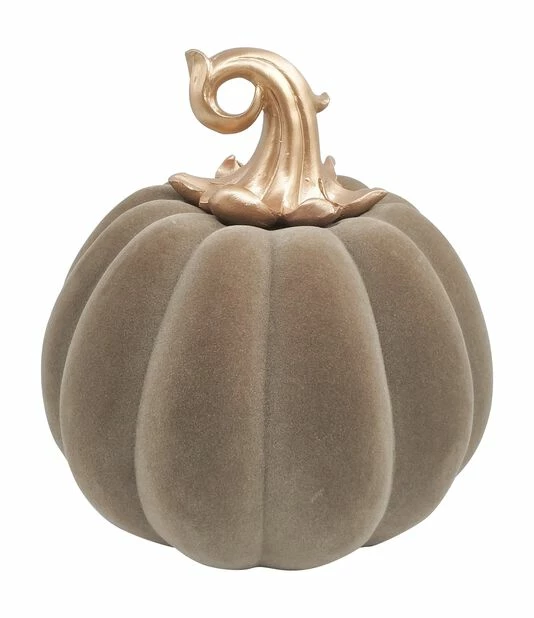Dekorativt, elegant, beige pyntegresskar i myk velur med gullfarget stilk. Gjør hjemmet klart for høstens kosekvelder med dekorative pyntegresskar i elegant design. Gresskaret fås i tre ulike farger og tre ulike størrelser. Mål: 22,5 x høyde 22 cm.