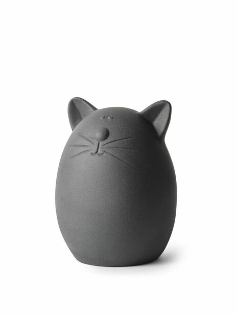 Søt, moderne pyntekatt i mørkegrå leire som passer like godt til uteplassen som til hjemmet. Håndlaget. 17,5 cm x 24 cm.