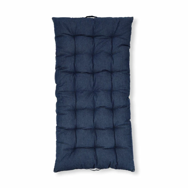 Klassisk, dobbel sittepute i trendy jeans-look. Bomullstrekk med håndtak på siden og polyesterfyll. Øko-tex sertifisert, fri for skadelige kjemikalier og fargestoffer. Til innendørsbruk.