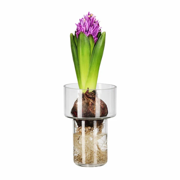 Svibelen er en av våre mest klassiske juleblomster som har fått en naturlig plass i hjemmene våre i hele desember. Plasser en svibel i en vakker svibelvase for å spre hygge i førjulstiden! Naia er en stilren vase til svibler i sotet glass med en grå nyanse som gir amaryllisvasen en moderne finish. Vasen er transparent slik at du kan se løkens vakre røtter. Fyll vasen med vann opp til den skålformede delen av vasen, og plasser svibelløken i vasen slik at bare røttene havner under vann. Det er viktig at ikke selve løken ligger i vann, ettersom det kan føre til at den råtner. Svibel er en populær gave som passer perfekt som vertinnegave når du blir invitert på middager og fester i desember. Gi bort litt juleglede i form av en svibel i vase!