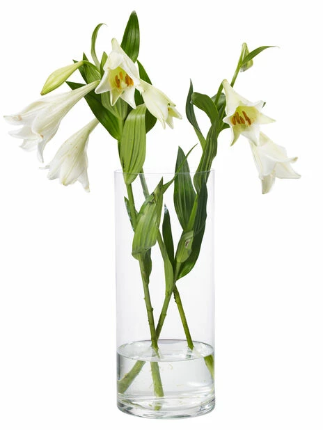 Sylinderformet glassvare som passer godt til for eksempel roser og amaryllis. Diameter 12 cm, høyde 30 cm.