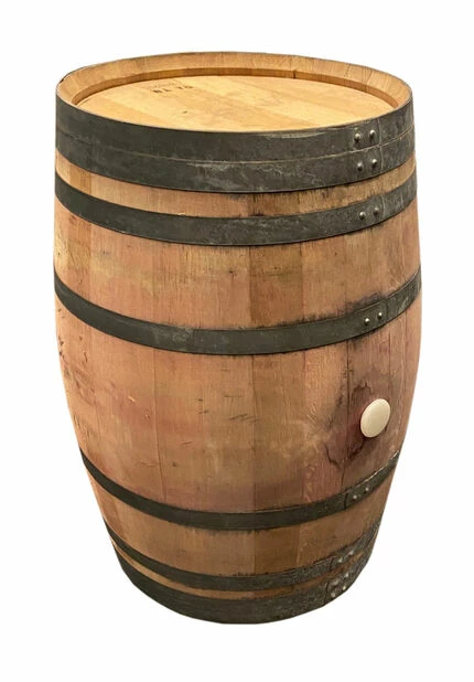 Denne tønnen i eik rommer 225 liter og kan med fordel brukes utendørs. Tønnen har tidligere blitt brukt til vinproduksjon og har derfor merker fra dette bruket, som gir den et stilig, vintageaktiig utseende, men er i god stand.